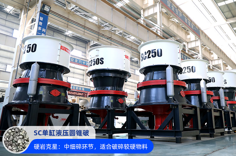 SC單缸液壓圓錐破,用于中細碎環節,適合破碎各類較硬物料